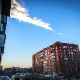 o rastro do meteorito é visto sobre um prédio residencial na cidade de Tcheliabinsk, Rússia. Quase mil pessoas ficaram feridas